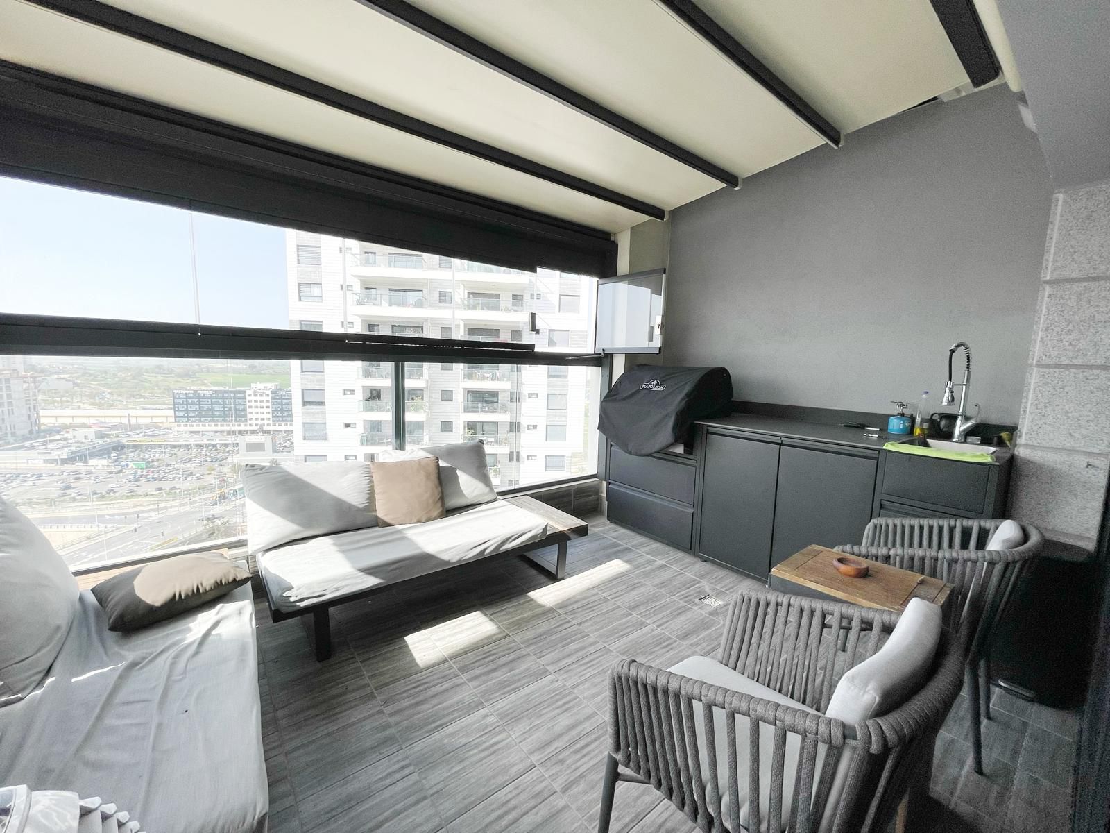 מטבח חוץ מושלם במרפסת עם סגירת חורף